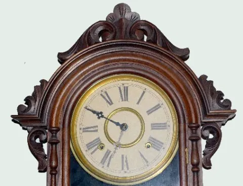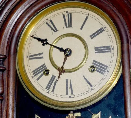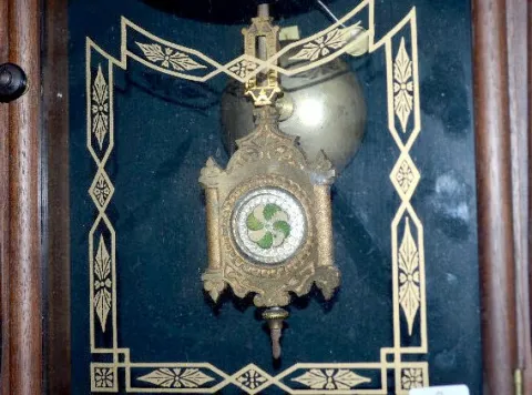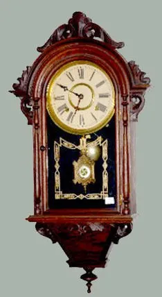 In a wood case masterfully built by Dick Broline, the owner; with an old 8 day T&S movement; an unmarked paper dial and a Sandwich Glass pendulum. Not...