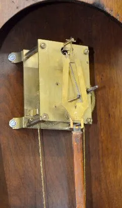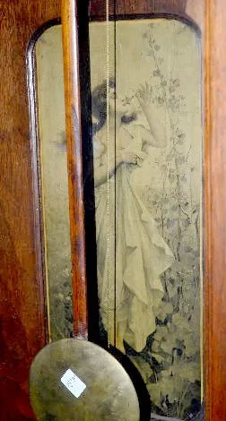 With a TO weight driven movement; an "S" marked paper dial with 2nds bit; decorated back panel; the pendulum and weight. Not tested. (Wrong movement.)...