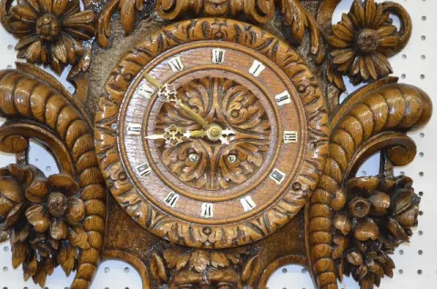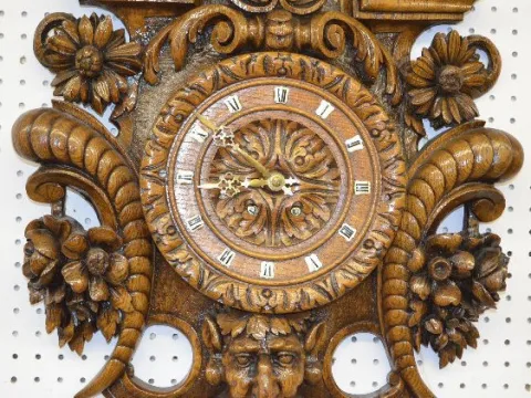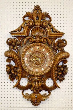 French Carved Wood Devil Mask Clock
