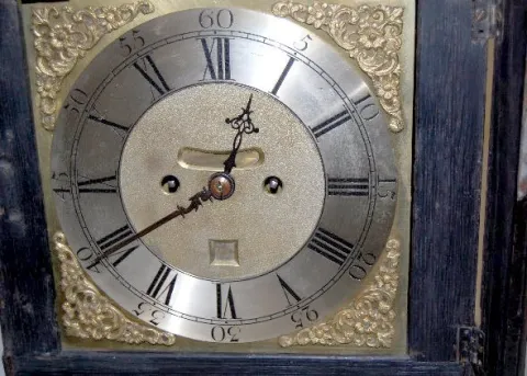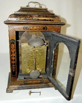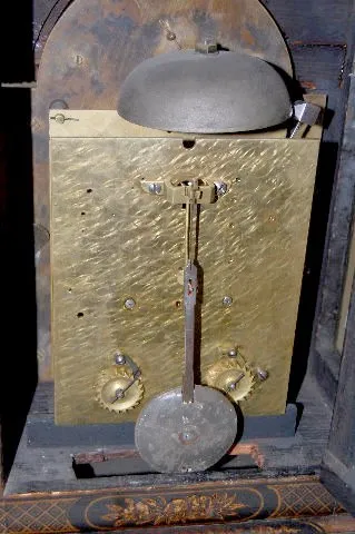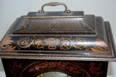 This is a London made double fusee clock in a Japanned case, circa the last half of the 18th century. The strike is on a large, steel cup bell. The me...
