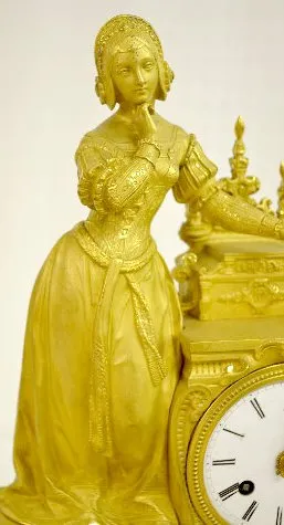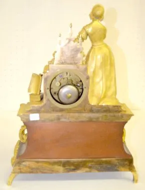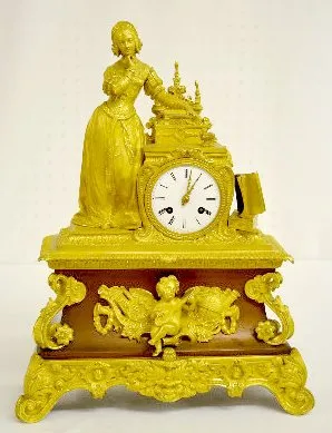 The bell strike movement is unmarked, except for No. 811. The porcelain dial with the original looking hands has no problems. The regal looking woman ...