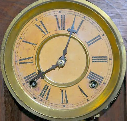 With an unmarked paper dial and the pendulum. The clock is running at this time. 27 1/2" Tall...