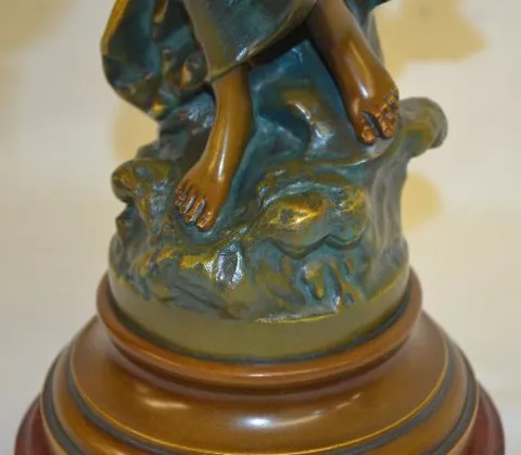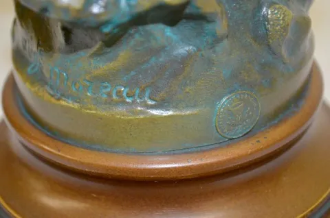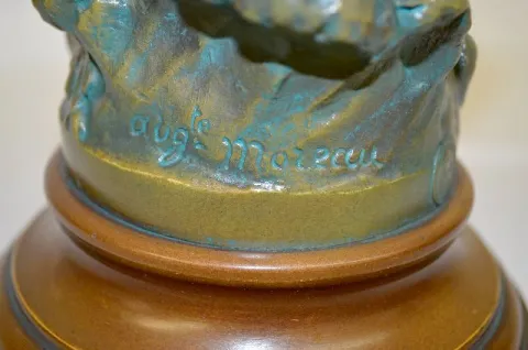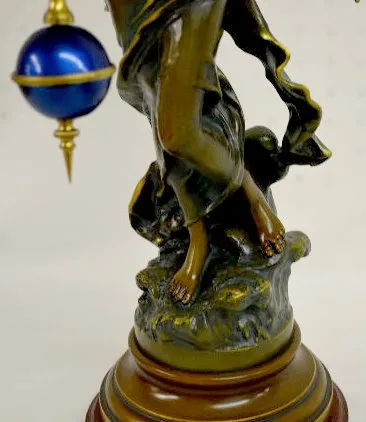 With a TO movement marked "R 2824"; cobalt balls and the foundry stamp on the statue. Titled "Nereide" par Aug. Moreau (Med. D'Or). With good patina. ...