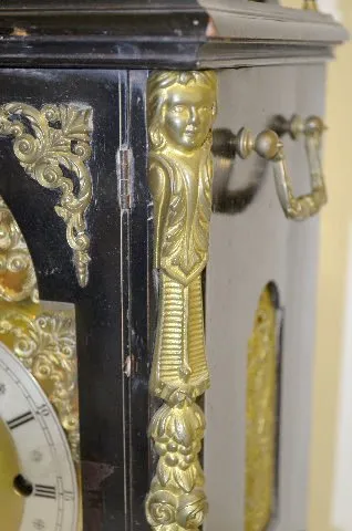 With a T&S movement with chimes, 5 gong strike, marked "WH" and numbered 273; a brass face with a silvered metal chapter ring dial; and the pendulum. ...
