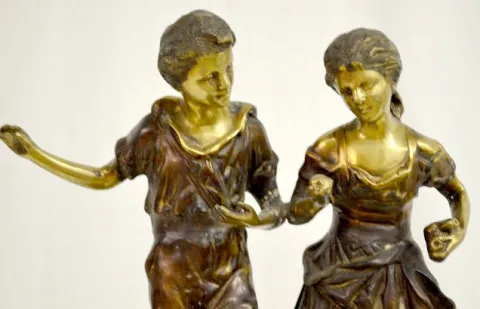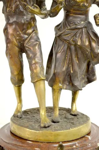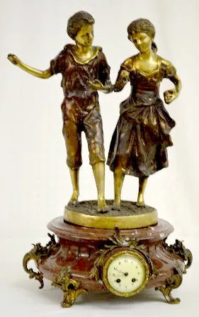 A. D. Mougin Bronze & Marble Clock; Boy & Girl