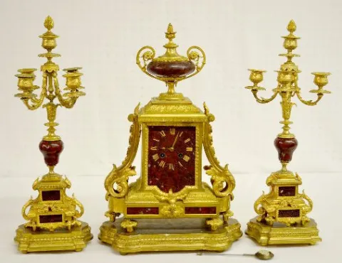 Japy Freres Bronze & Marble Clock Garniture Set