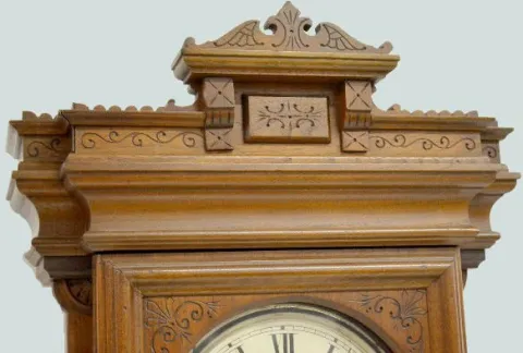In a walnut case with an 8 day T&S movement; an unmarked upper dial; the lower dial is marked "Manufactured for Lynch Brothers" and the pendulum. Not ...
