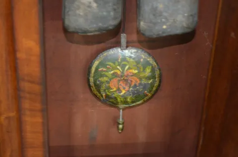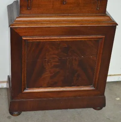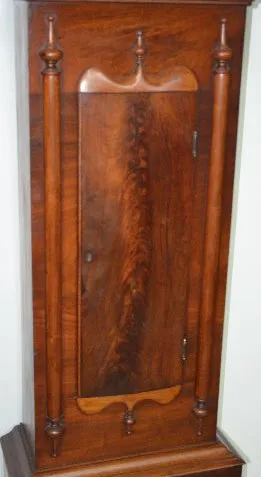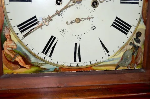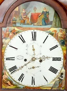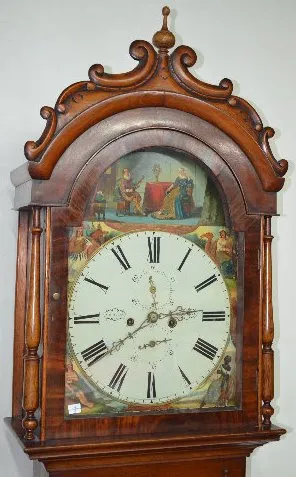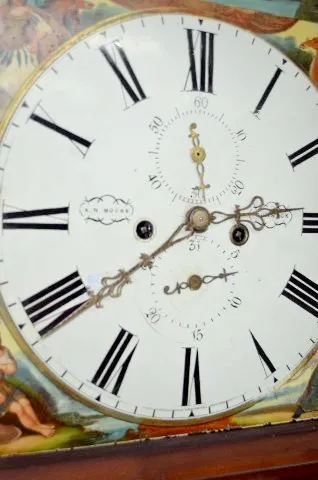 With a bell striking movement and a painted steel dial that is marked "A.N. Moore - Cumnock" (in Scotland) and has a seconds and day of the month dial...