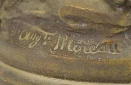 The statue is of a lady with flowing hair and a gown. She is signed "Aug. Moreau" and has the foundry mark on the back. The movement is unsigned. The ...