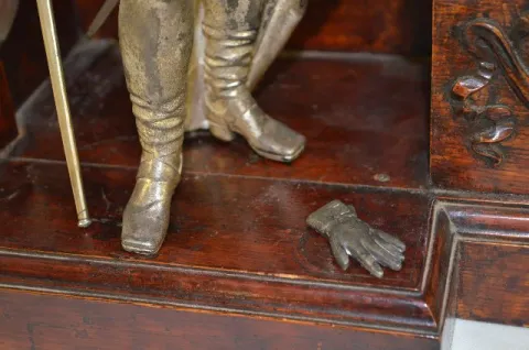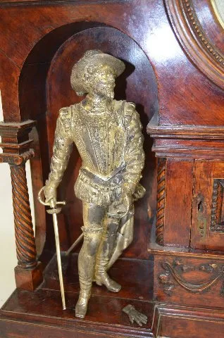 With an 8 day T&S movement; a marked metal dial with 2nds bit; the pendulum and key; signed Seth Thomas movement; and Don Juan and Don Cesar statues. ...