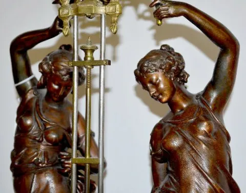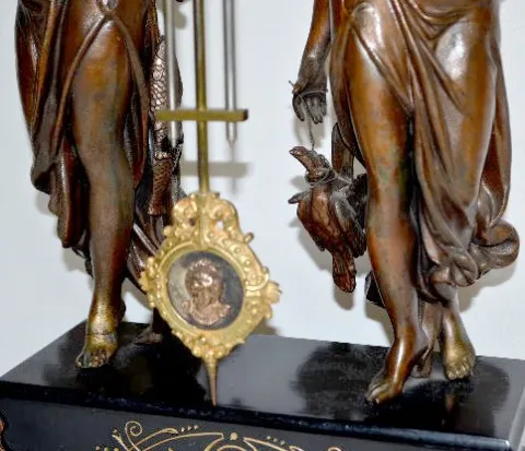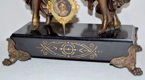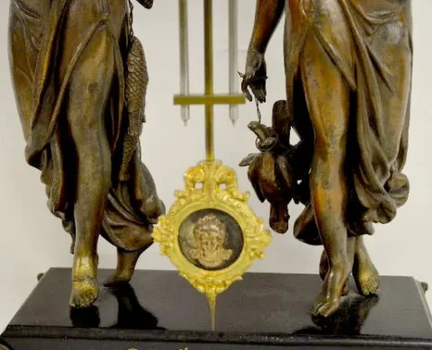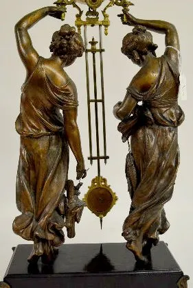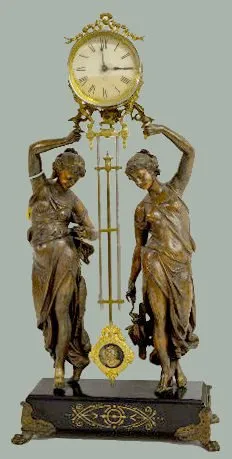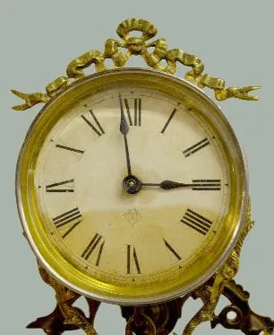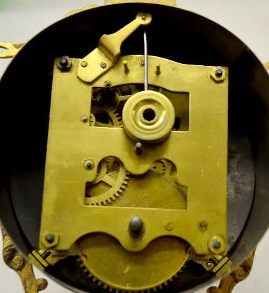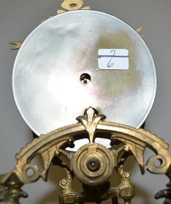 This all original clock has an unmarked tin can movement and a signed paper dial. The clock is running at this time. (The dial is stained; the falcone...