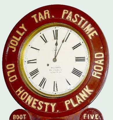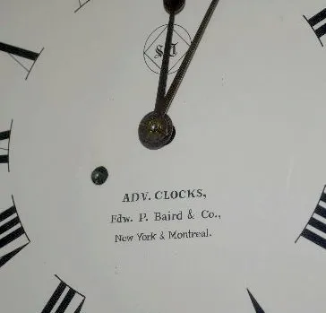 With a TO movement and a metal Seth Thomas dial also marked "Adv. Clocks Edw. P. Baird & Co. New York and Montreal". The upper case reads "Jolly Tar, ...