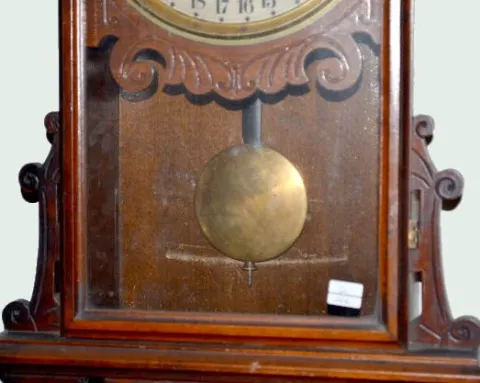 Black time only; has the pendulum and key. There is a note from Dick Broline, the owner, regarding the history of this clock. Not tested. 41" Long...