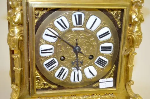 With a T&S movement marked "S. Marti" and incised "LeRolle Fres. Paris" and a brass face with porcelain cartouche numerals and marked "LeRolle Fres. P...