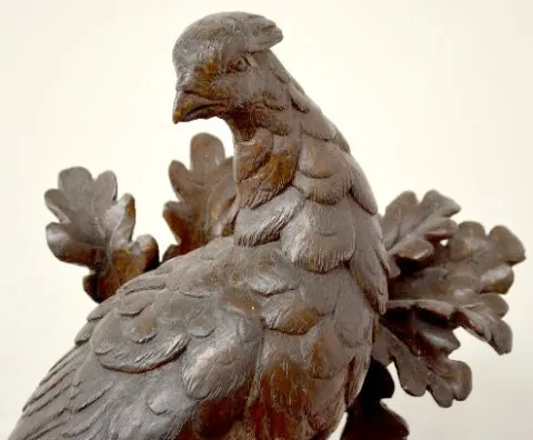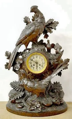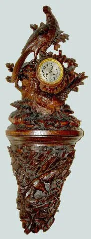 Black Forest Carved Pheasant & Dog Clock, 48"