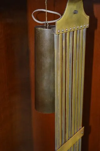 With an 8 day weight time, sweep second hand, retaining power and original porcelain dial in perfect condition. The escapement is deadbeat. A grid iro...