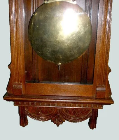 In a great oak case with a TO movement; the dial, with sweep 2nd hand, and the gridiron pendulum. Not tested. 86" Tall...