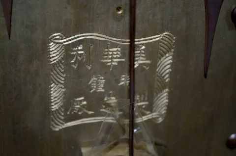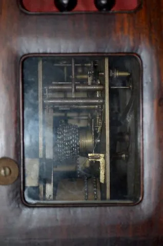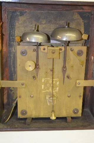 The back plate has an 8 character mark on it - engraved in 3 lines with a border. There are 2 bells, of different sizes, each with its' own hammer. Th...