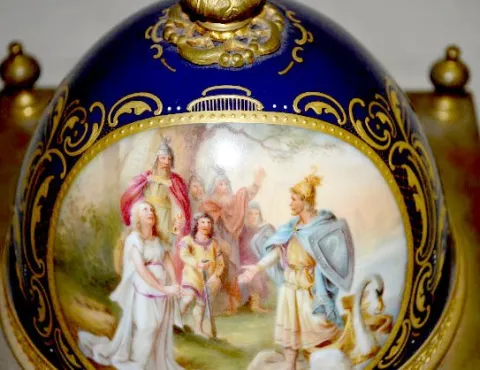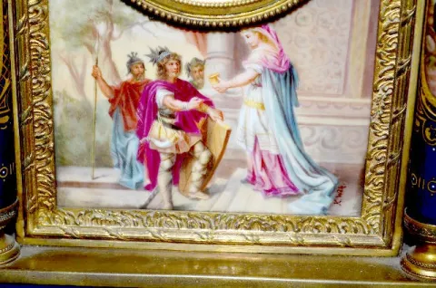 The gong striking movement is also marked AUG 1 Million and No. 477814. The dial and every panel on the case is painted in fine detail with significan...
