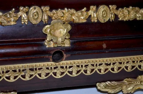 The movement and dial, with sweep second hand, are marked "James Murray Royal Exchange London No. 1409". There is a cathedral gong 6" cylinder music b...