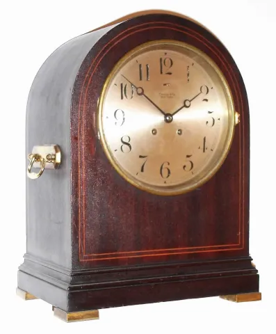 Chelsea Clock Co., Boston, Mass., "Doric", 8 day, time and strike, mahogany case mantel clock retailed by Tiffany and Co., Serial No. 35255, c1908.