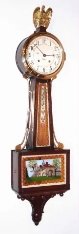 Chelsea Clock Co., Boston, Mass., 8 day, time/house strike 3/4 size banjo or patent time piece. Serial no. 744708, c1971.