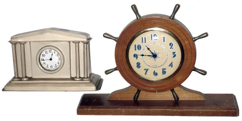 Clocks- 2 (Two) Connecticut novelty time pieces, Gilbert 8 day yacht wheel and Lux Celluloid 30 hour, early 20th century