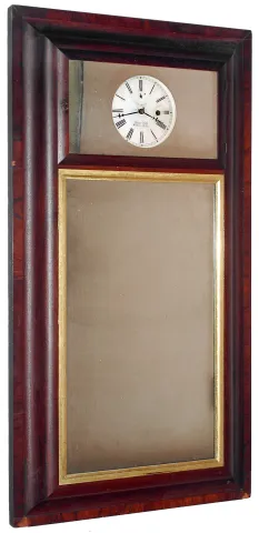 George Hills, Plainville, Conn., 30 hour time and strike marine movement mirror wall clock, c1855.