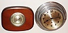 the metal dial and case have some wear and tarnish, the thick beveled glass in its hinged bezel is fine, 8.75" overall diameter. The barometer is in ...