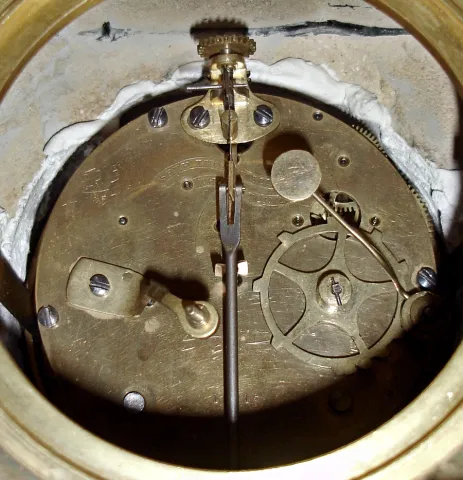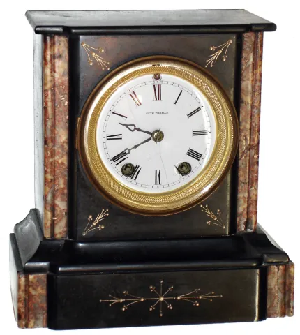 marble case from France; one small chip on the top front corner is the only flaw on this stone case with nice tan marble accents. The white porcelain...