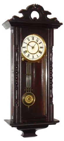 New Haven Clock Co., New Haven, Conn., mahogany, 8 day, time and strike, wall clock in Vienna regulator style, c1900