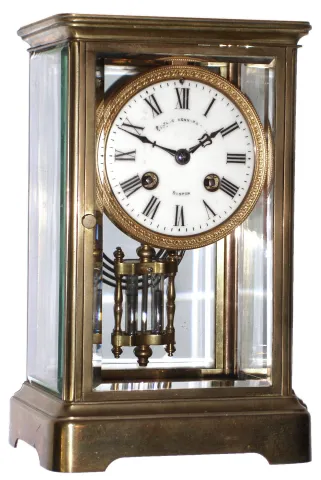 French, 8 day, time and strike, brass and glass crystal regulator retailed by Bigelow Kennard, Boston, c1900