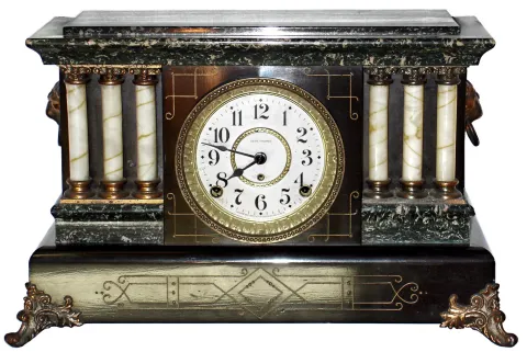 Seth Thomas Clock Co., Thomaston, Conn., Adamantine green marble look, 8 day, time and strike, mantel clock, c1909