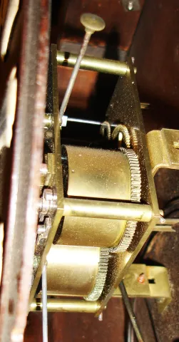 the case is extremely ornate, more typical of French cast metal cases, but rare and unusual in turned and carved hardwood that now is dry and dull. I...
