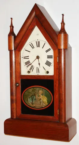 Seth Thomas Clock Co., Thomaston, Conn., 8 day, time and strike Steeple or Sharp Gothic mantel clock, c1879