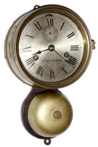 Seth Thomas Clock Co., Thomaston, Conn., brass 30 hour ship's bells hanging clock, c1910