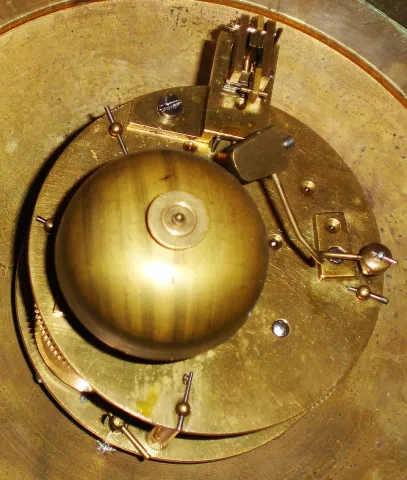 Movement fairly clean, functional time and strike trains, regulator missing, hand washer and taper pin missing, dial has darkened over time, with some...
