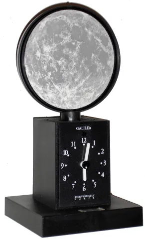 Galilea, French quartz movement desk clock with calendar and moon phase, in original box with manual, c1990