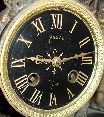 French marble and spelter figural 8 days, time and strike, mantel clock, c1890