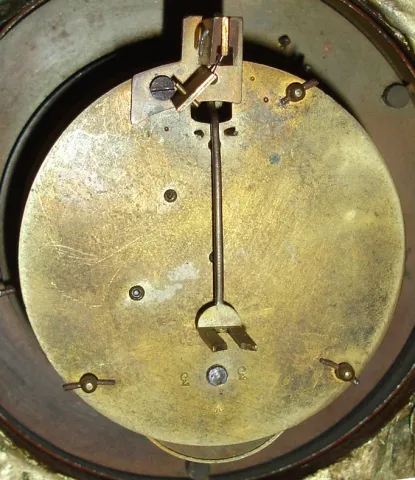 Clock case refinished, top of case slightly bowed from the weight of the sculpture, dial is dirty with fading numerals, minute hand missing, hour hand...