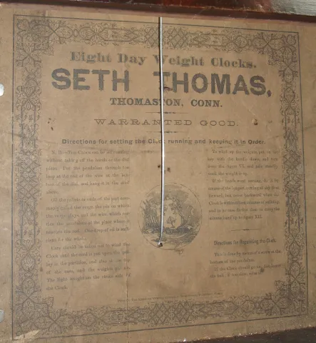 Seth Thomas Clock Co., Thomaston, Conn., "Column and Cornice" mahogany 8 days, time and strike, weight driven lyre movement shelf clock, c1870