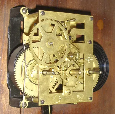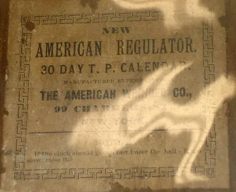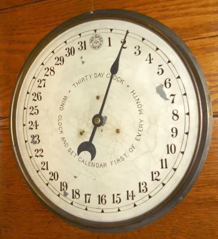 New Haven Clock Co., New Haven, Conn., for the American Wringer Co., New York, 30 day, spring double dial wall calendar timepiece. c1900