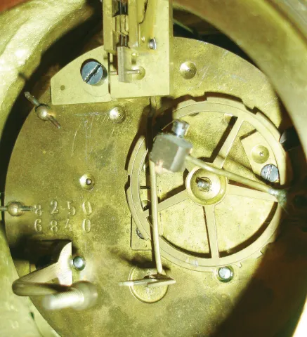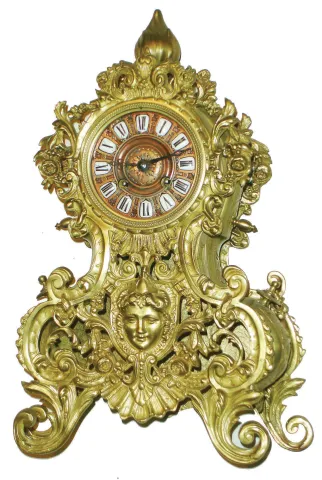 the heavy case retains a bright patina with no losses or damage except for cracks on the rear feet. The dial has porcelain cartouche numbers, but the...