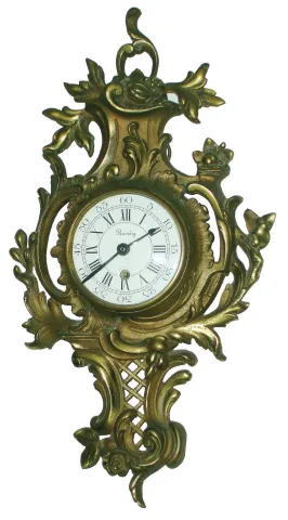 French cast brass cartel wall clock case with later 8 day time only pin-pallet works, early 20th century