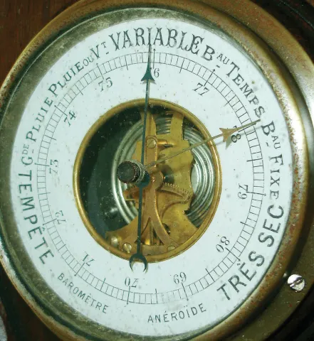 French walnut 8 day time and strike wall clock with thermometer and barometer, c1910