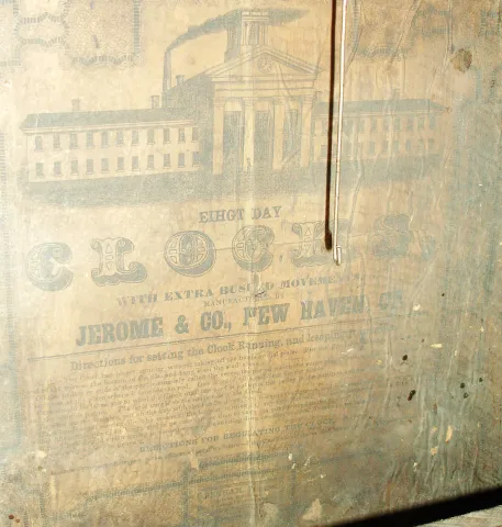 Jerome and Co., (New Haven Clock Co.), New Haven, Conn., 8 day, time and strike OOG shelf clock.