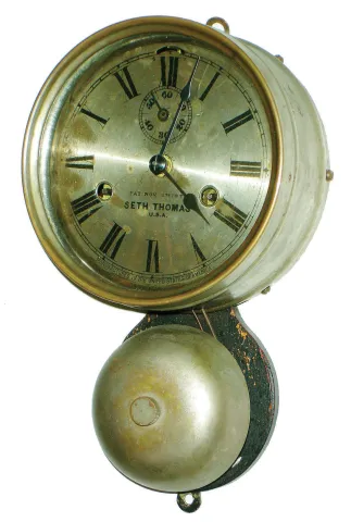 Seth Thomas Clock Co., Thomaston, Conn., nickel plated 30 hour outside bell ship's clock, c1910