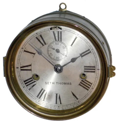 Seth Thomas Clock Co., Thomaston, Conn., brass 8 day time only engine room clock, c1910