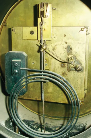 this huge glossy case has a number of small flakes and chips, but overall the appearance is very nice. The white porcelain dial has a chip at one win...