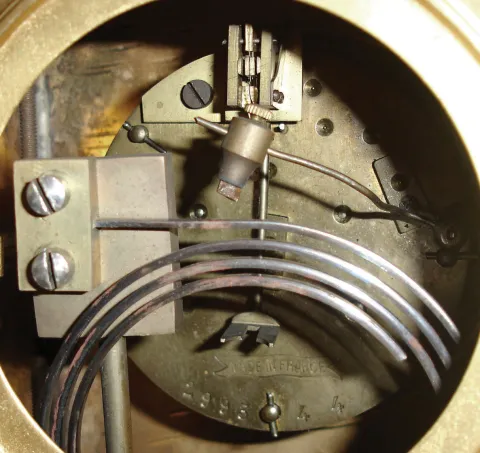 this smaller clock is in very nice overall condition, with no losses and just a bit of tarnish and spotting on the lacquered surface. The porcelain ...